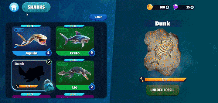Through user interviews, competitive analysis, and early prototype testing, we identified four key player archetypes that are typical of Hungry Shark Franchise. The Character Select interface is designed to fulfill these key archetypes.