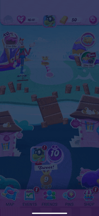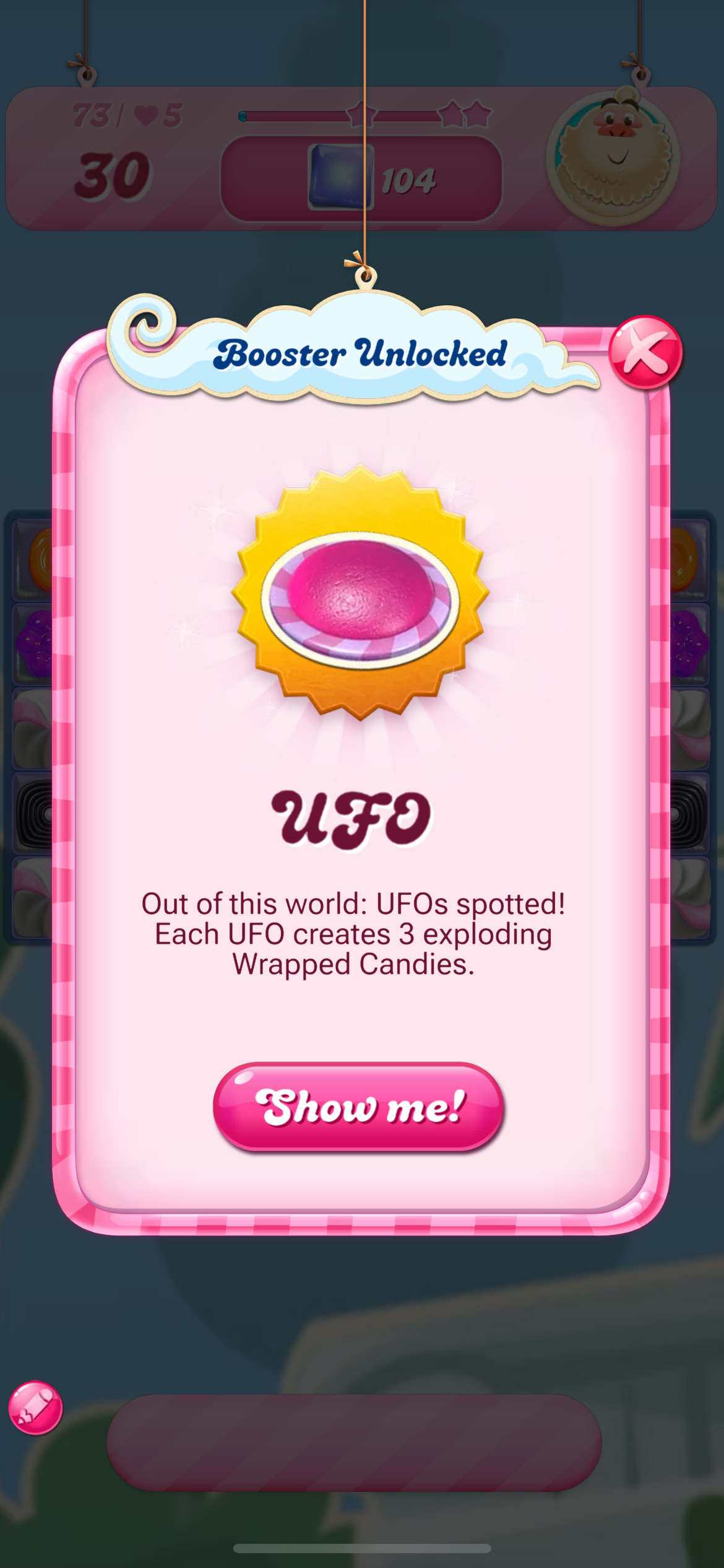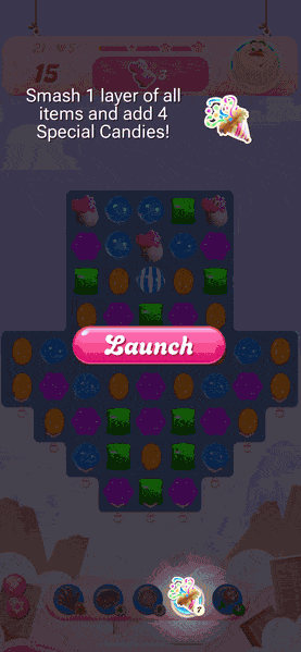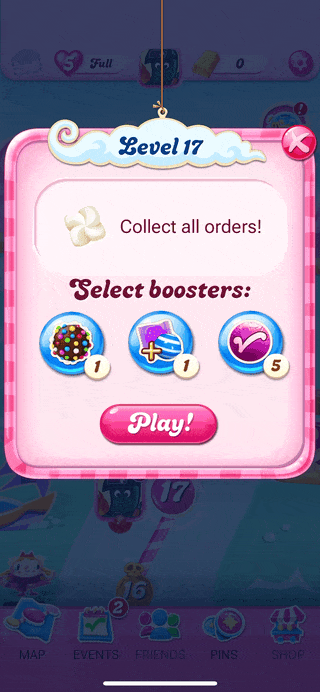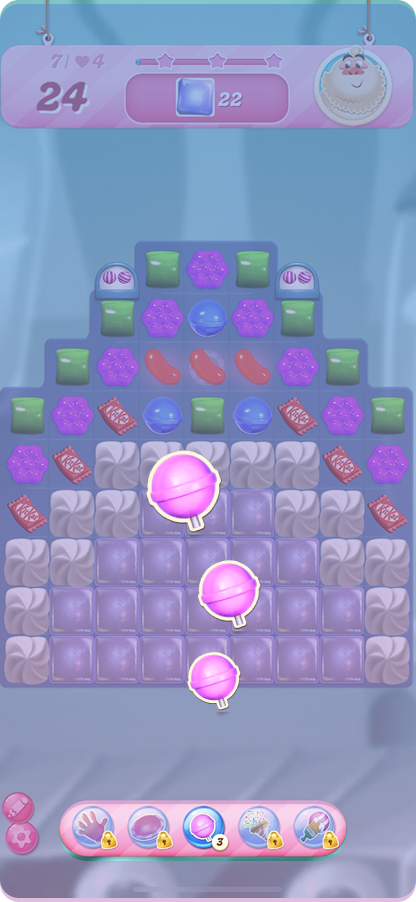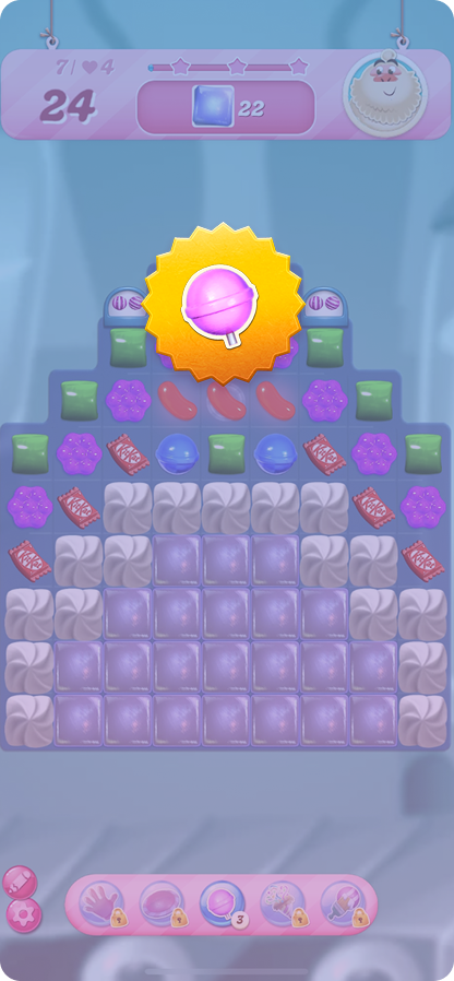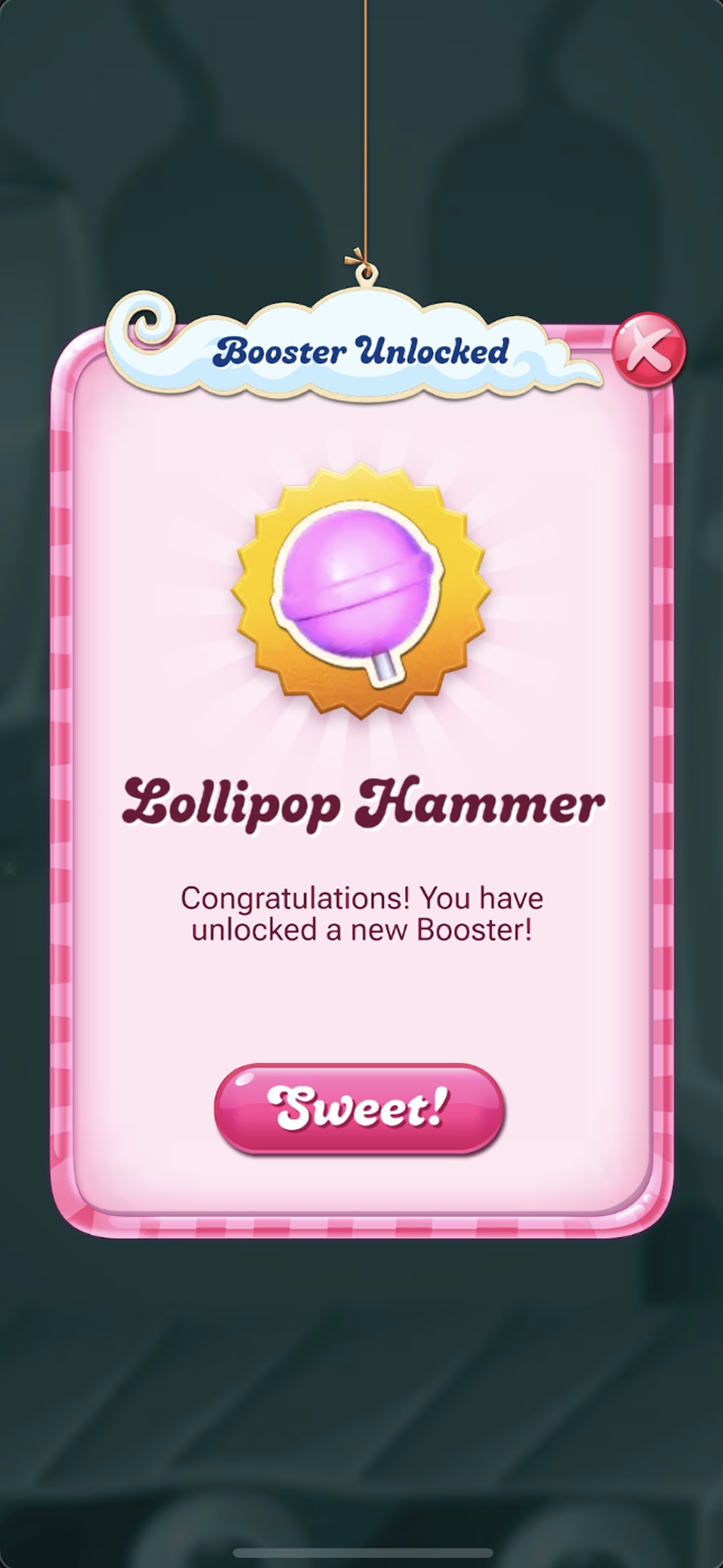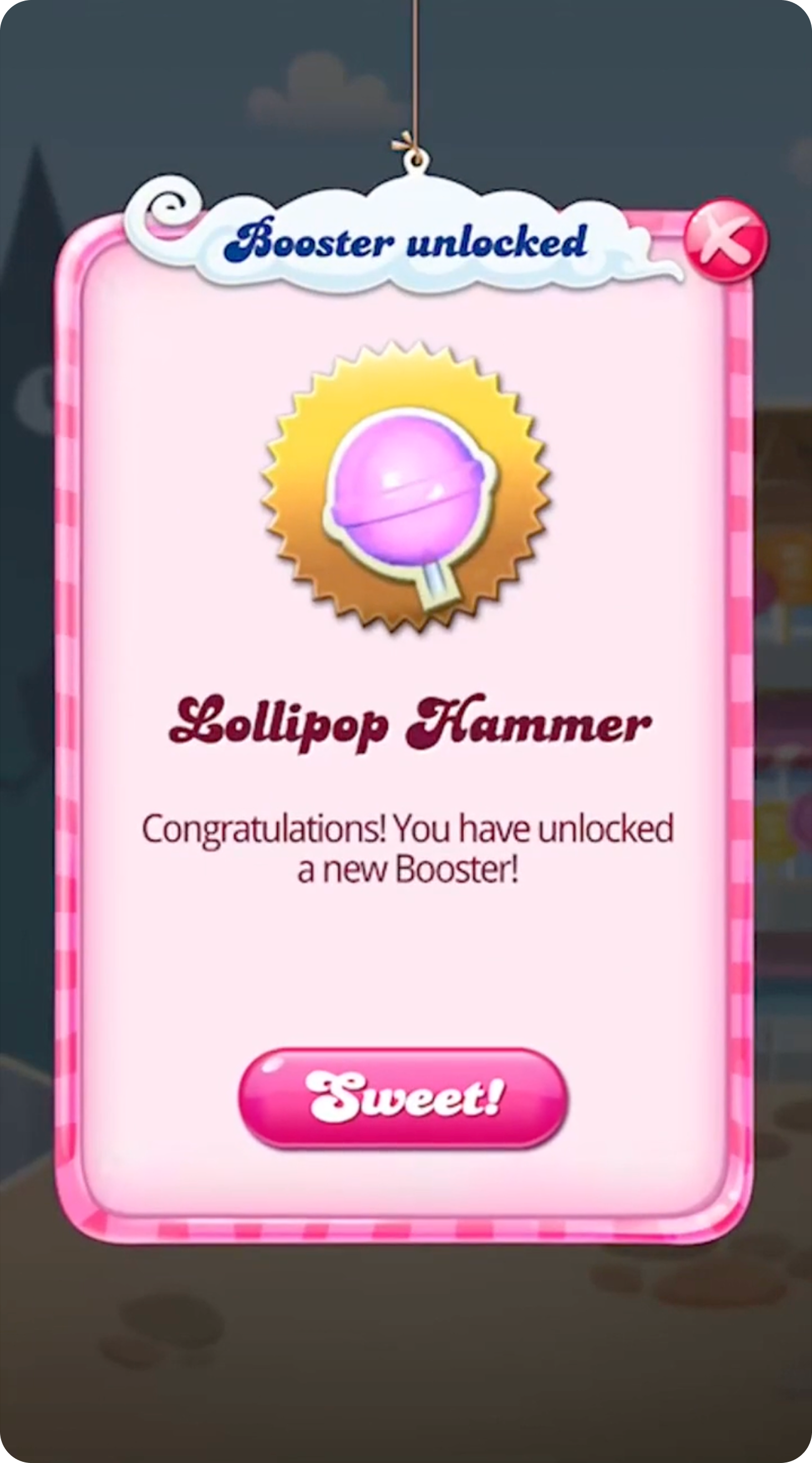 "Candy Crush Saga's character mascots are under-utilized. We explored inserting the characters to celebrate the unlock moment, without taking away focus from the booster."