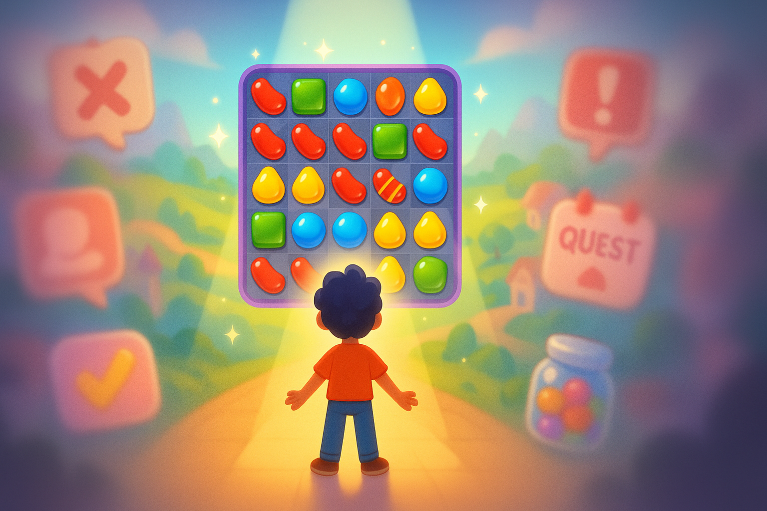 Cut through the noise—let players discover Candy's depth through invisible learning that makes them feel clever, not taught.