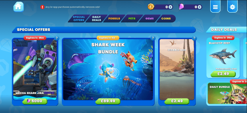 Learning from our legacy game (Hungry Shark World) and performing competitive benchmarking against mobile games, I established 6 design principles for our approach with Hungry Shark Primal's Shop.